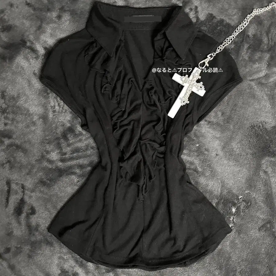 다크 코케트 다크 코어 앞 프릴 티셔츠 옷깃 coquette