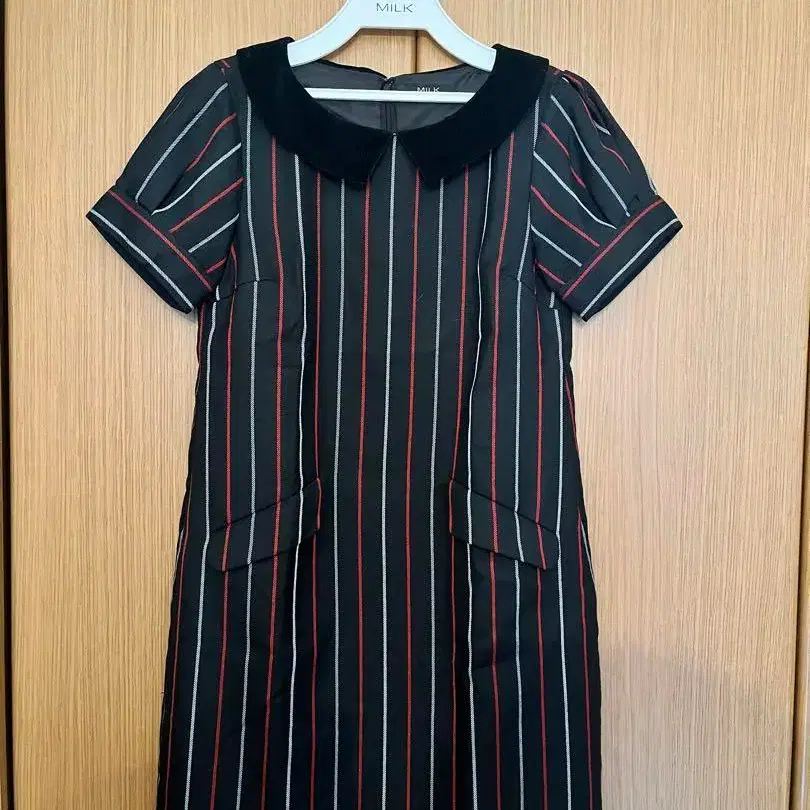 MILK lovely 트레디셔널 원피스 블랙 레지멘탈 스트라이프