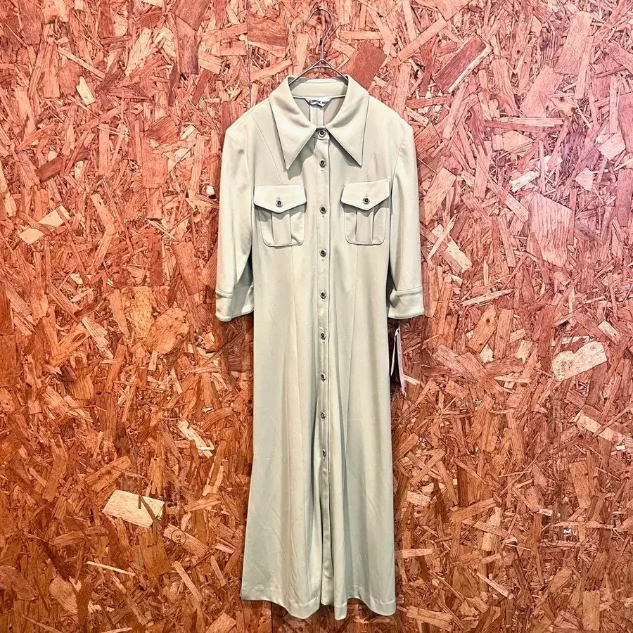 BLANC DE NOIR 롱 원피스 플레어 슬릿 라이트 그린