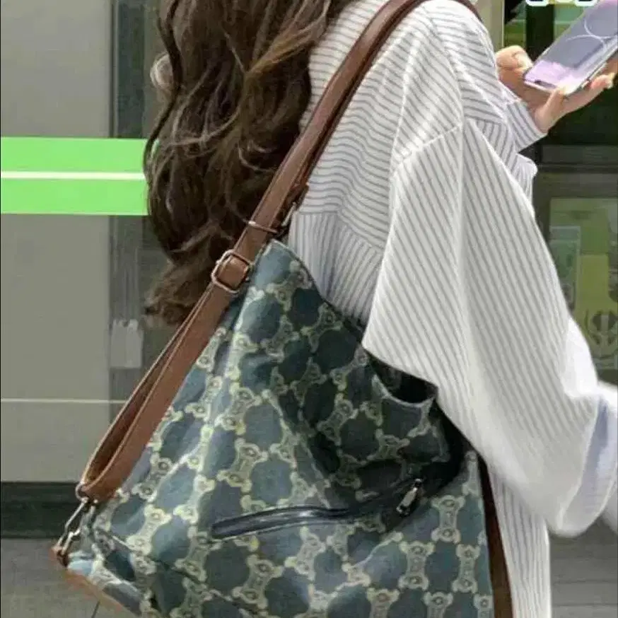 • 데님 백 끈의 조정 가능 숄더백 가죽