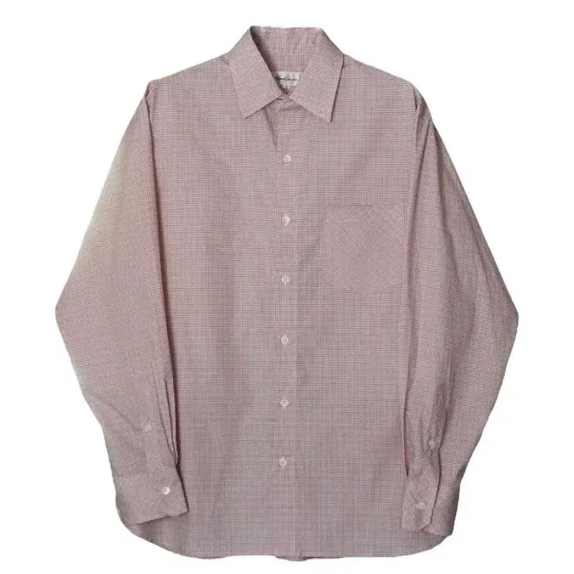 자동 번역되었어요. 원문보기빨간색과 흰색의 체크 무늬 긴팔 셔츠, 가슴 포켓 부착.