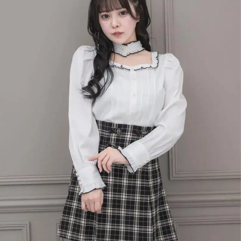 지뢰계 제이미 Ank 파랑과 검정 체크 무늬 플레어 스커트