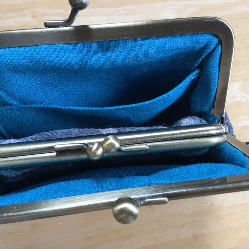 부모와 아이 가마구치 지갑 그레이와 베이지의 기하학 패턴