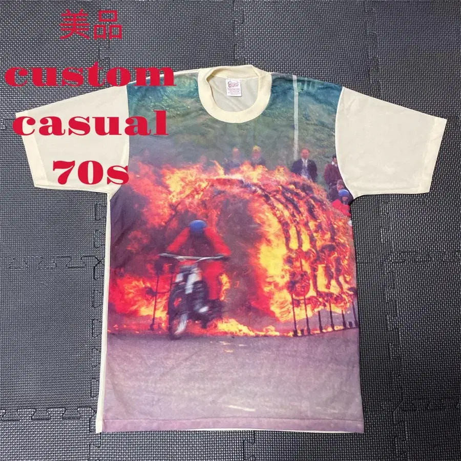 레어 새상품급 custom casual 불의 라이더 티셔츠 70s