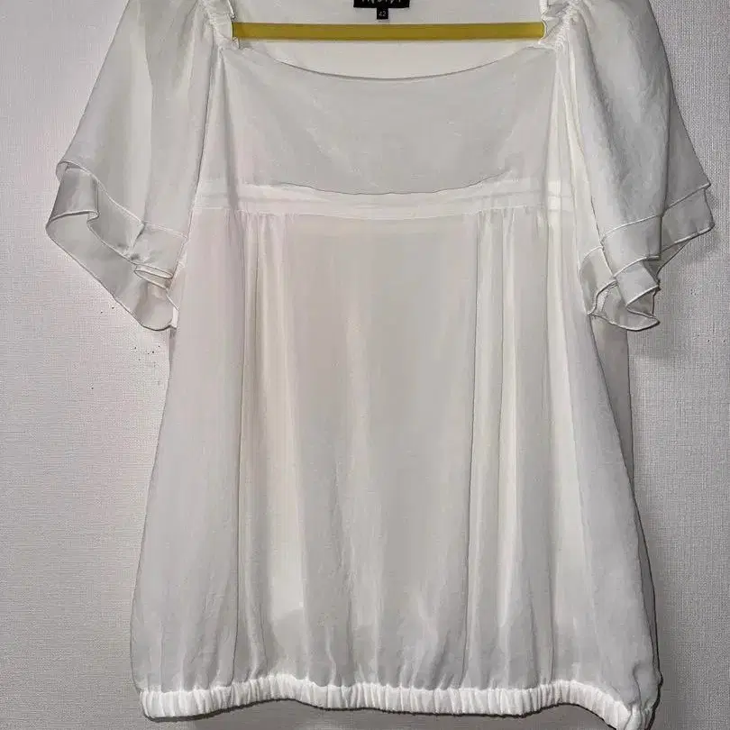 미사용 새상품 INDVI42 사이즈 화이트 프릴 반팔 블라우스 안감 부착