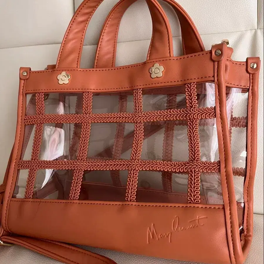 MARY QUANT 메쉬 디자인 핸드백 - 색상: 오렌지 - 소재: 합성 피혁 및 투명 소재 - 디자인: 메쉬 디자인 - 스트랩: 탈부착 가능한 숄더 스트랩 - 장식: 꽃 모티브의 금속 부품 【사이즈】 가로 24cm x 세로 18cm x 바닥 9cm *평평하게 놓았을 때의 실측치수입니다. 약간의 오차가 있을 수 있으니 양해 부탁드립니다. 2회만 사용했습니다. 눈에 띄는 흠집이나 얼룩은 없지만 앞쪽 아래쪽과 오른쪽 끝 중앙 부분에 작은 얼룩과 스크래치가 있습니다. 이미지로 확인하시기 바랍니다. 중고 상품이므로 세부 사항에 민감한 분은 구매를 자제해 주시기 바랍니다. 이해해 주실 분만 구매 부탁드립니다. 색상은 촬영 상태 등에 따라 다소 차이가 있을 수 있습니다. 컴팩트하게 접어서 발송합니다.