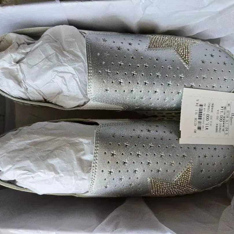 스타 스터드와 비쥬가 장식된 실버 에스파드리유 스타일의 슬립온. - 컬러: 실버 - 디자인: 스타 스터드 장식 - 장식: 비쥬 장식 - 스타일: 슬립온 - 밑창: 에스파드리유 스타일 방문해 주셔서 감사합니다.