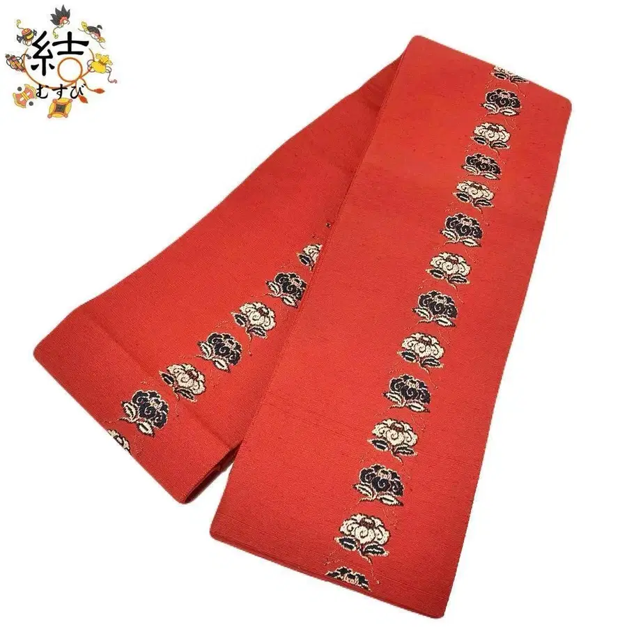 MO-3016 반폭 오비 기류 직물 동백꽃 무늬 진홍색