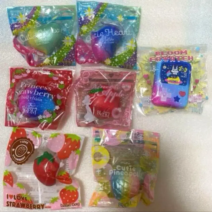 BLOOM 블룸 스퀴즈 묶음 판매 7개 블룸 호왁치 큐티 하트 그린 큐티 하트 블루 프린세스 애플 프린세스 스트로베리 아이 러브 스트로베리 미니 미니 큐티 파인애플 가방에는 벽걸이용 구멍이 있습니다. (테이프로 막아 놓았습니다) 스퀴즈의 특성상 색상 불균일이나 초기 흠집이 있을 수 있습니다. 사진에 있는 것이 전부입니다. 자택에서 보관하고 있으므로 양해 부탁드립니다. 이 점 양해 부탁드립니다. 구매를 부탁드립니다. 예민하신 분은 삼가 주시기 바랍니다. 질문 등이 있으시면 부담없이 댓글 달아주세요. 낱개 판매 불가