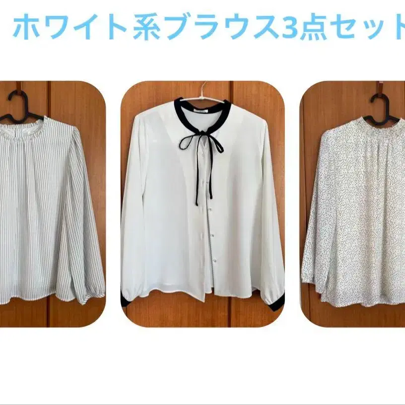 화이트 블라우스 3개 세트 건조가 쉽고 체온 조절이 쉬운 소재입니다. 사이즈는 M 사이즈입니다. 모두 3회 정도만 착용했습니다. 즉시 구매 OK #오피스 캐주얼 #화이트 #블라우스