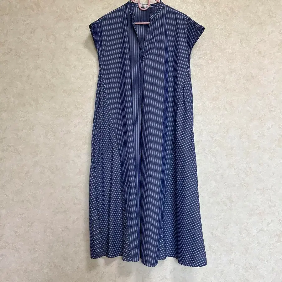 네이비 블루와 화이트 스트라이프의 슬리브리스 셔츠 원피스. - 색상: 네이비 블루와 화이트 스트라이프 - 디자인: 슬리브리스, 밴드 카라 - 스타일: 셔츠 원피스 - 길이: 롱 원피스 양쪽 겨드랑이 부분에 포켓 있음 압축 포장하여 보내드립니다. 방문해 주셔서 감사합니다.