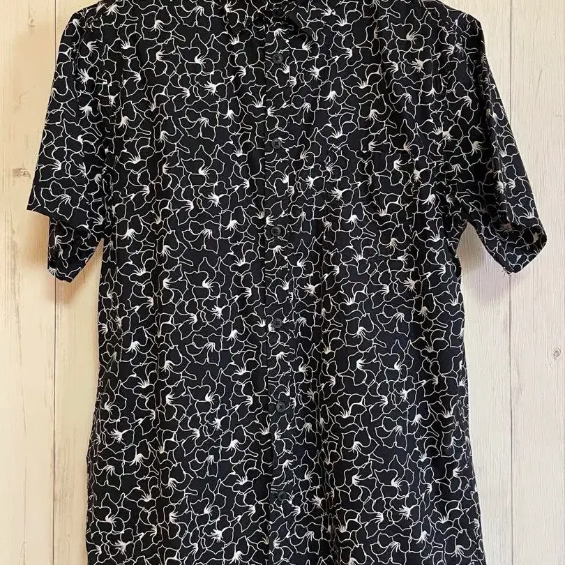 • [ LiNoH ] [ M ] 긴팔 셔츠 프린트 블랙 꽃무늬 하와이안