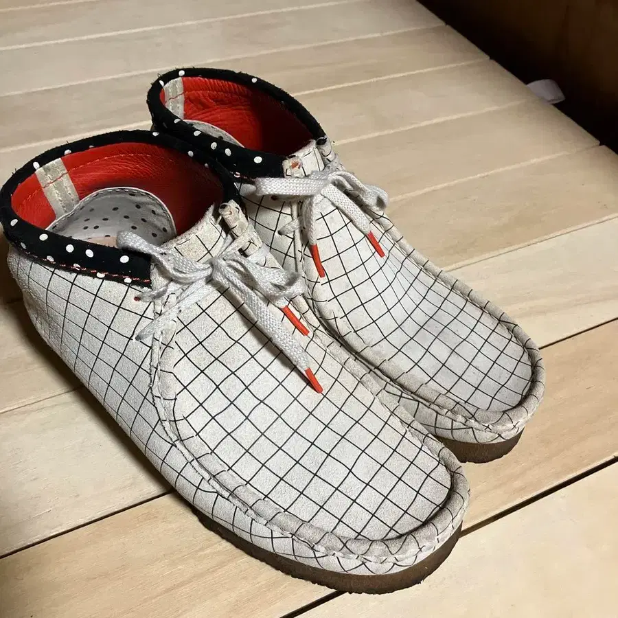 클락스 왈라비 록키 체크 미드 컷 스니커즈 베이지 US9
