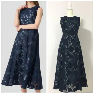 리플렉트 레이스 무늬 네이비 무릎 기장 원피스
