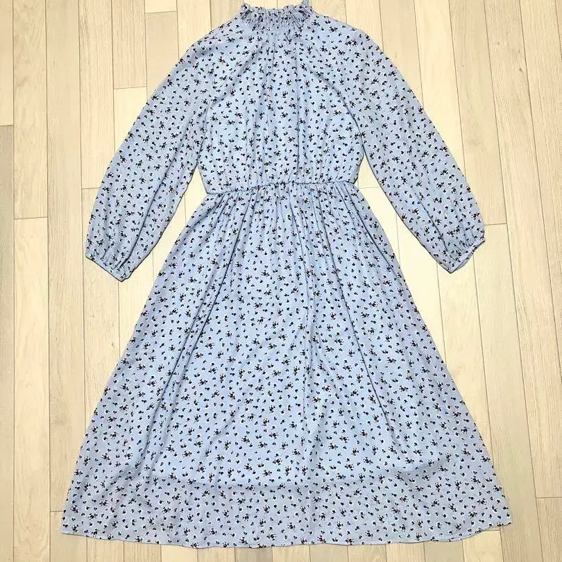 UNIVERVALMUSE 스카이블루 꽃무늬 하이넥 원피스