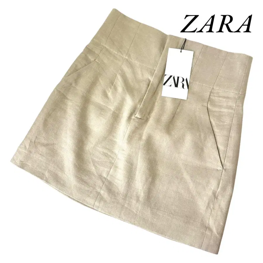 ZARA 자라 린넨 혼방 A 라인 미니 스커트 베이지 미사용 새상품