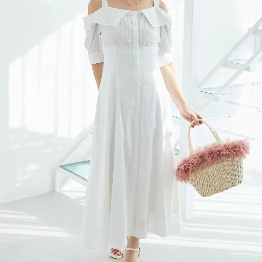 앙크루즈 비쥬 오프숄더 원피스 화이트