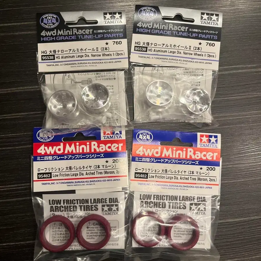 미니 사륜구동 95482 95538 HG 큰 지름 내로우 알루미늄 휠 II 2개 세트 저프릭션 큰 지름 배럴 타이어 2개 세트 미사용품이지만 자택 보관품이므로, 이해하실 분만 부탁드립니다.