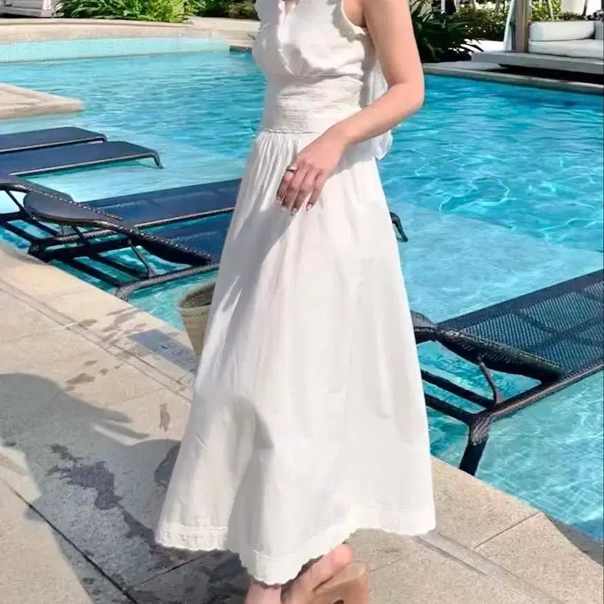 머큐리 듀오 꽃무늬 롱 원피스 숄더 슬릿 화이트 S