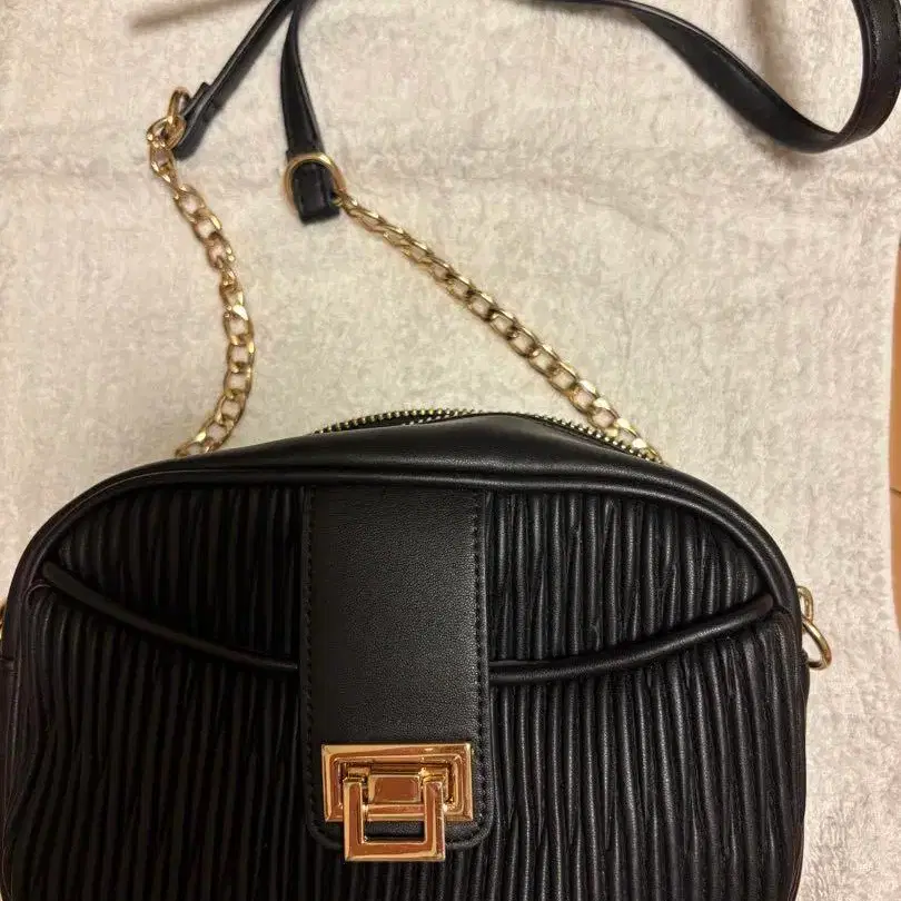 플리츠 디자인의 블랙 숄더백으로 골드 지퍼가 스타일리시합니다. 가방을 수집하고 있어 사용하지 않는 것이 많아서 판매합니다. 몇 번 외출에 사용했지만, 특히 눈에 띄는 흠집은 없습니다. 매우 튼튼합니다.