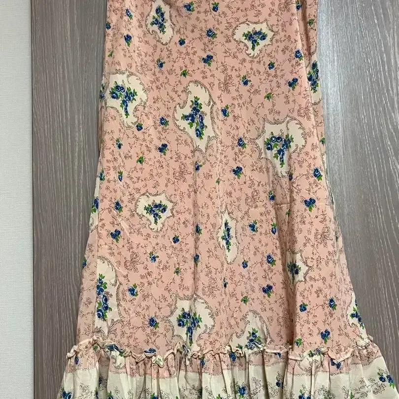 꽃무늬 프릴이 달린 타이트 스커트 핑크