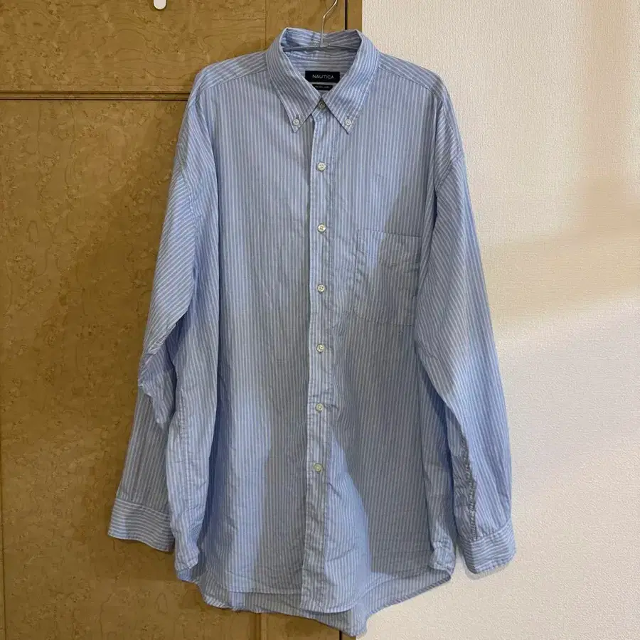 NAUTICA 스카이블루 스트라이프 버튼 다운 셔츠