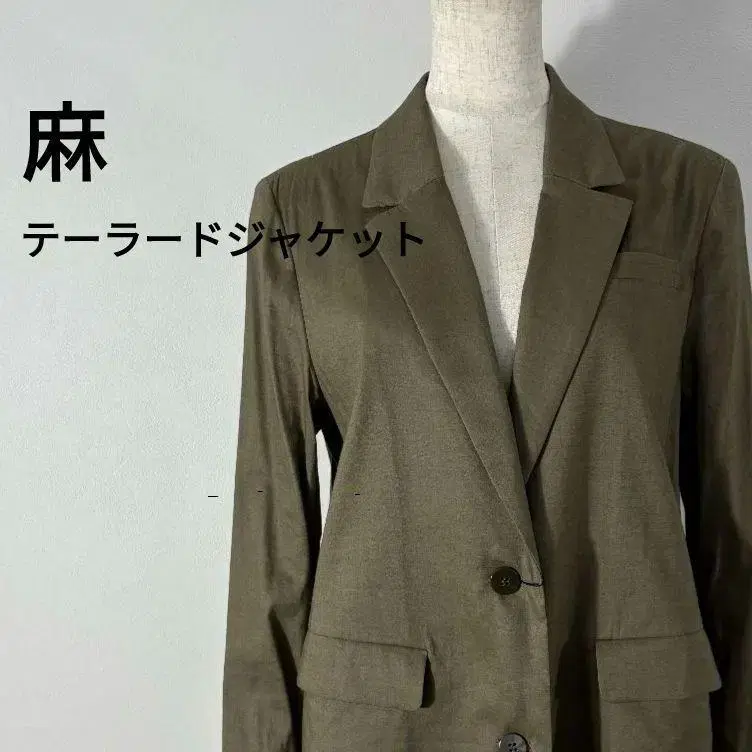 마 혼방 카키 자켓 린넨 혼방 테일러드 2개 버튼 깔끔한 캐주얼