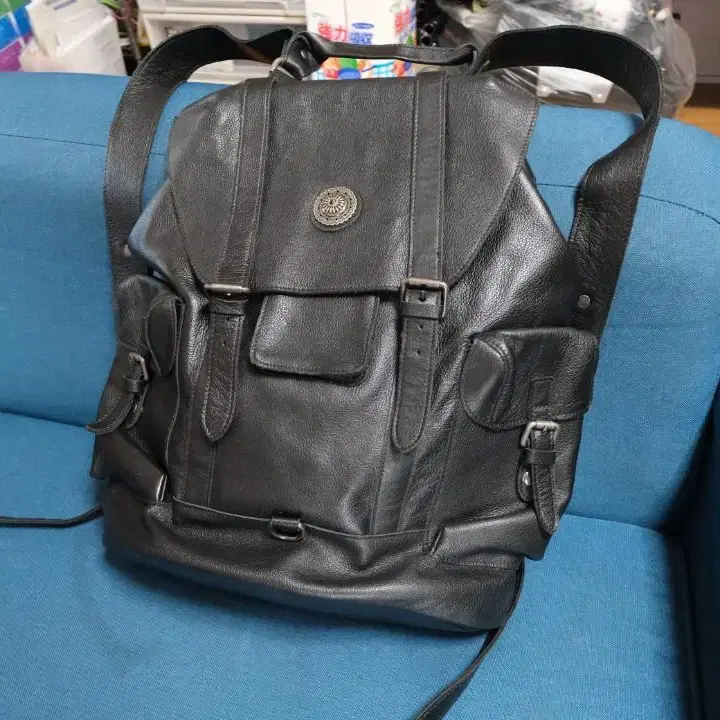 천연 가죽 락 디자인 가죽 백팩 거의 미사용품