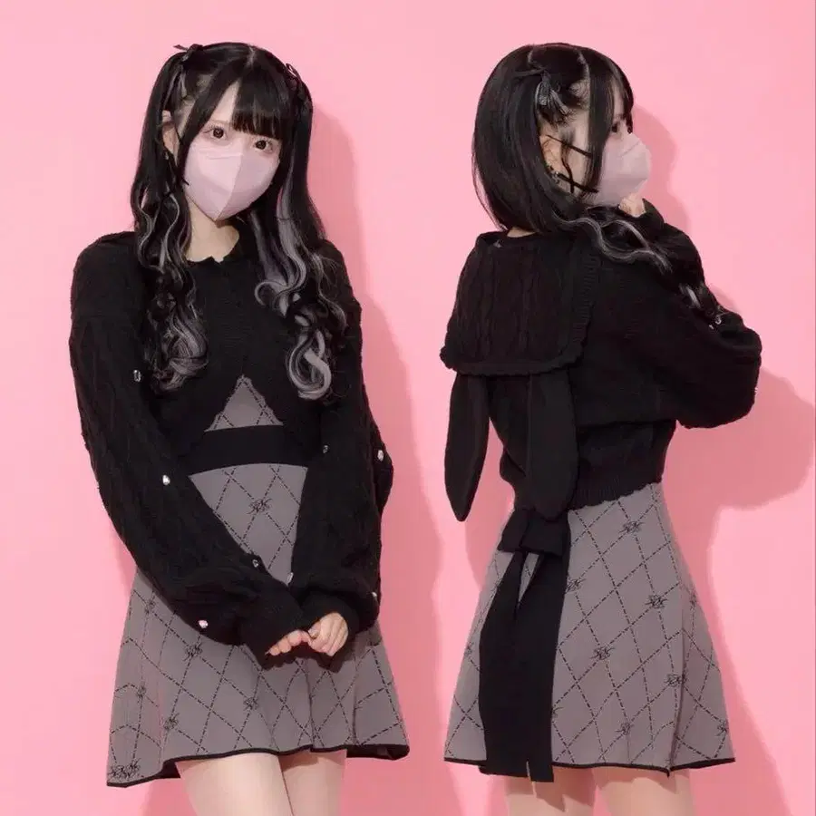• ankoROCK 토끼 귀 후드티 블랙 후드티 지뢰 멘헤라