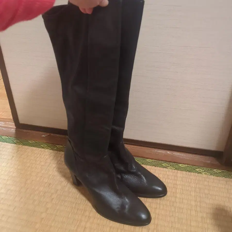 새상품급 천연 가죽 롱 부츠 블랙 22.5cm