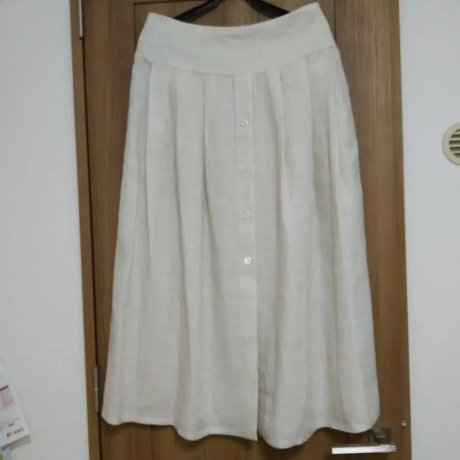 아이보리 스트라이프 무늬 플레어 스커트, 프론트 오픈 버튼, 린넨 소재. - 색상: 아이보리 - 디자인: 스트라이프 무늬 - 스타일: 플레어 스커트 - 버튼: 프론트 오픈 버튼 - 소재: 린넨 방문해 주셔서 감사합니다.