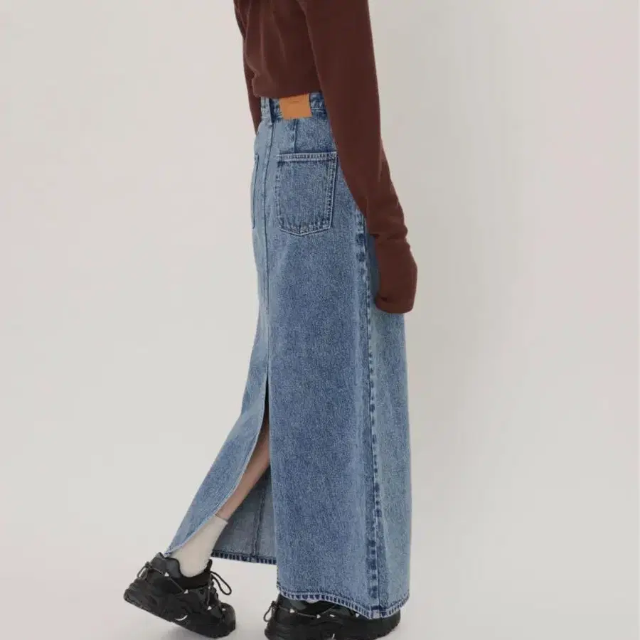 새상품급 goocy 데님 스커트 앞 버튼 파랑 면 100% 롱