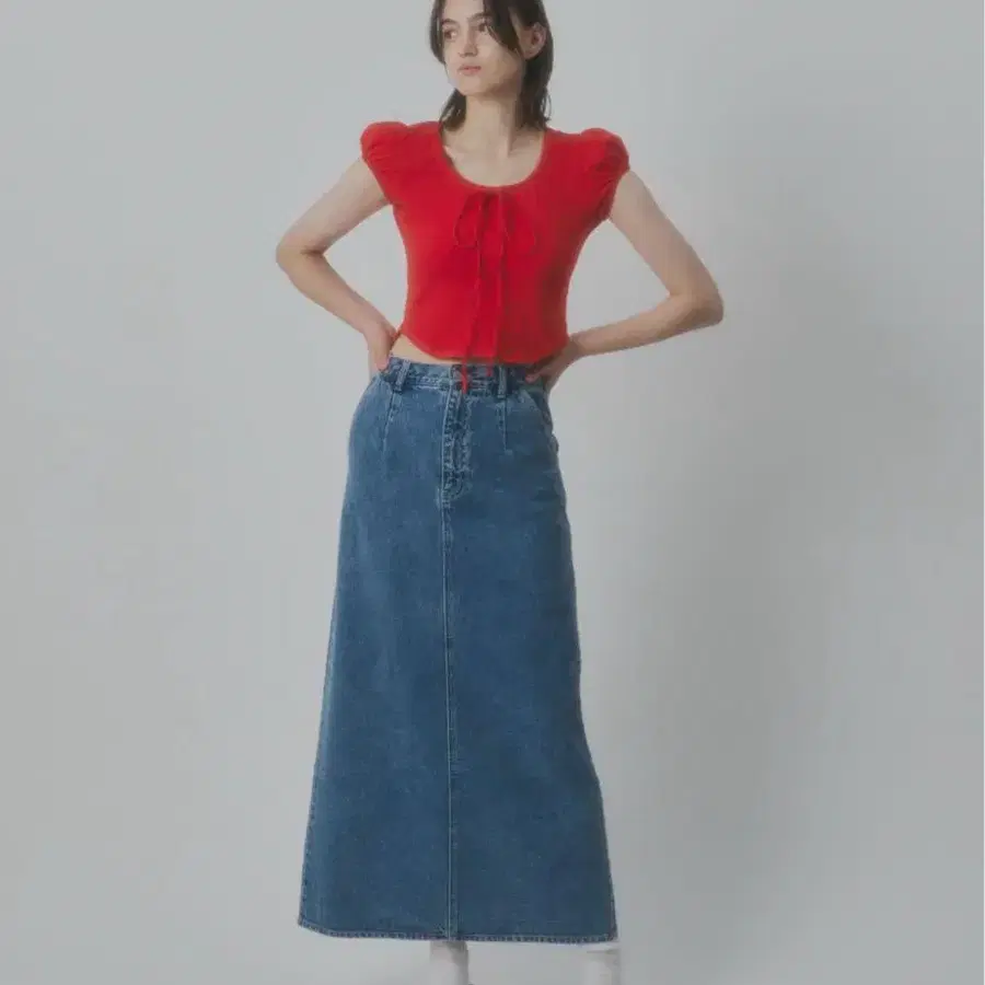 clear 허리 리브 슬릿 마감 머메이드 스커트