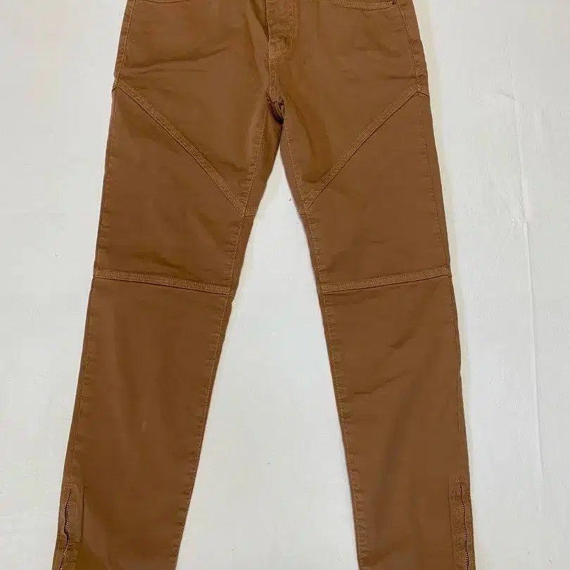 브라운 슬림 치노 팬츠 절개 도쿄 스타일 사이즈 38 (S) 밑단 지퍼