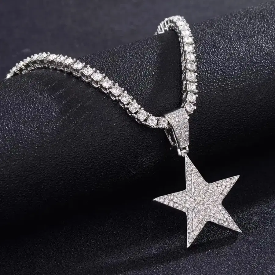 고급 체인 목걸이 50cm 스타 탑 포함 아이스 아웃