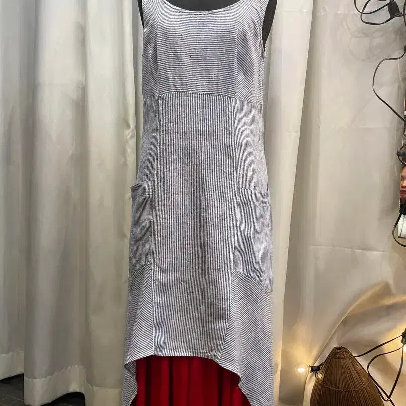 스트라이프 패턴 비대칭 원피스 에이프런