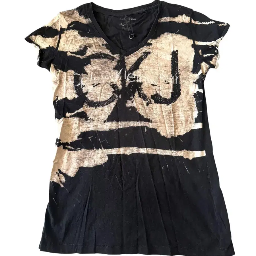 V넥의 블랙과 베이지 그래픽 티셔츠, 사이즈 S. - 브랜드: 캘빈클라인 - 색상: 블랙/베이지 - 사이즈: S - 디자인: V넥, 그래픽 프린트 방문해 주셔서 감사합니다. 재작년에 빈티지 샵에서 구입한 상품입니다. 입지 않게 되어 판매합니다. 부담 없이 문의해 주세요(*^^*)