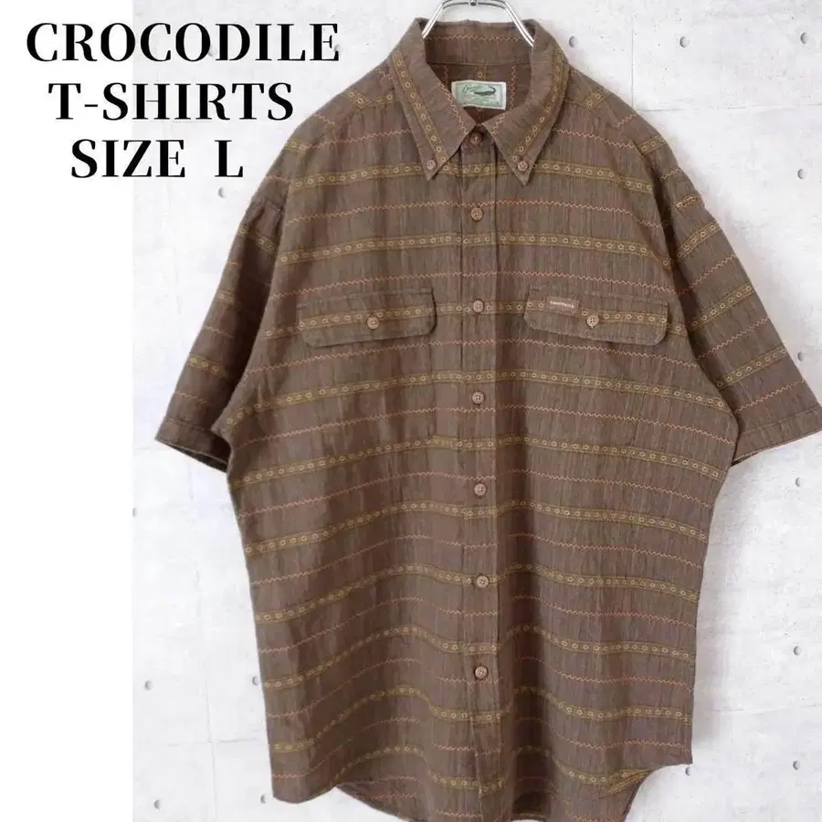 CROCODILE 버튼 다운 셔츠 반팔 올 패턴 브라운 L