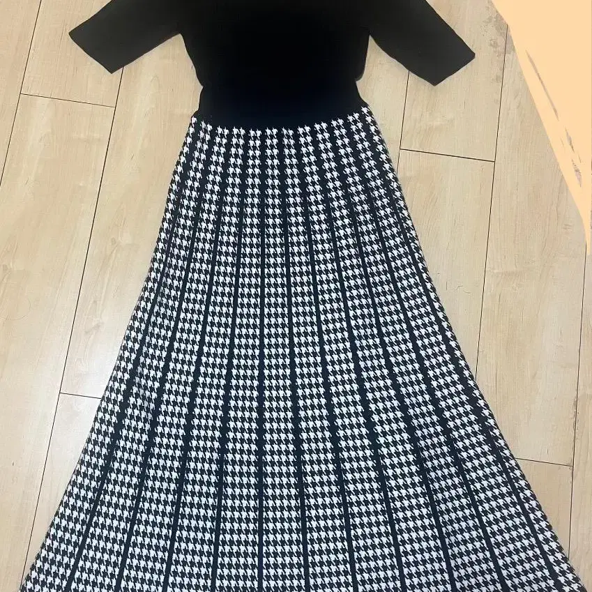 비어즐리컷 콤비 플레어 원피스 미사용 새상품(택 포함)