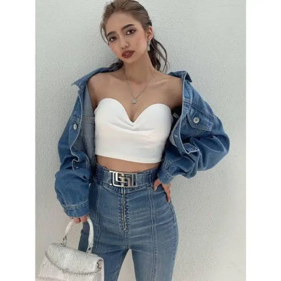 봉쥬르 사간 프론트 더블 지퍼 데님 뷔스티에 봉사가