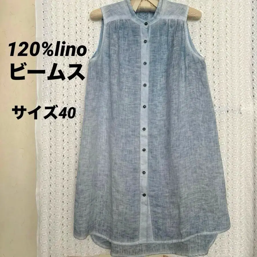 120% 리노 린넨 100% 밴드 카라 원피스 사이즈 40 레이스 포함