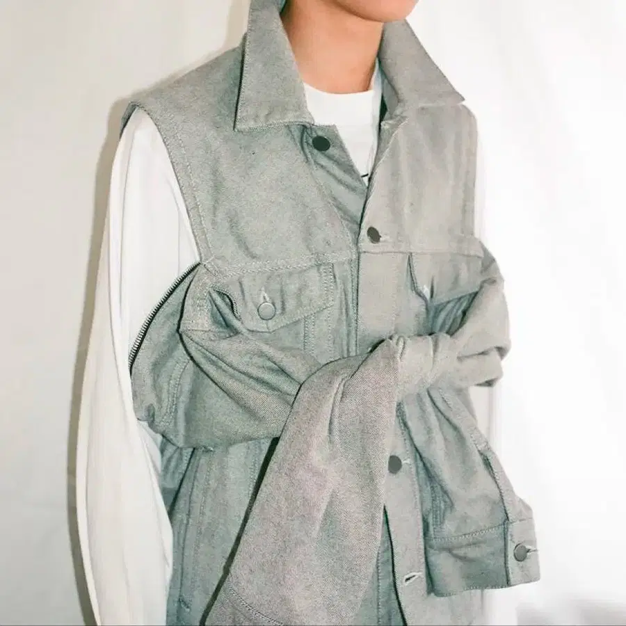 택 포함 새상품 SeaGreen 시그린 데님 자켓 데미지 가공