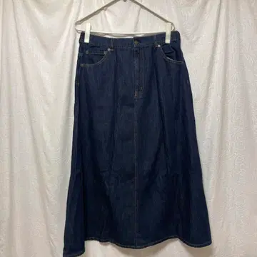 • 라코스테 무릎 기장 데님 스커트 M 소가죽 라벨