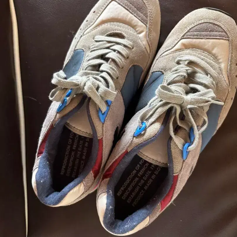 REPRODUCTION OF FOUND [리프로덕션 오브 파운드]의 프렌치 트레이닝복입니다. 2번 짧게 사용했습니다. 30,000엔 정도에 구입했습니다. 23cm 정도인 분에게 딱 좋은 사이즈감입니다. 약간의 얼룩이 있지만, 전체적으로 상태는 좋다고 생각합니다. 아래는 상품 설명입니다. 동일 브랜드에서 정기적으로 출시되는 제품입니다. 높은 인기를 자랑하는 불굴의 명작 스니커즈입니다. 1990년대까지 프랑스 군에서 트레이닝 슈즈로 채택되었던 일명 프렌치 트레이닝복입니다. 독특한 컷팅이 뛰어나고, 균형 잡힌 색상 배색도 인상적입니다. 당시 사용되던 패턴을 베이스로 현대의 테크닉을 구사하여 충실하게 재현하고 있습니다. 어퍼는 고급스러운 이탈리아 스웨이드와 이탈리아 나일론을 조합하여 어른이 신어도 어울리는 디자인입니다. 옛날의 스포츠 슈즈를 연상시키면서도 현대의 패션에 잘 어울리는 일품입니다. 라이닝은 패브릭 스웨이드와 메쉬 사양으로 통기성을 높였습니다. 또한, 외형보다 훨씬 가볍고 착용감이 쾌적하며, 발을 넣으면 쿠션성이 있는 인솔이 발을 부드럽게 감싸줍니다. 두께가 있는 EVA를 사용한 밑창은 밀리터리 아이템 특유의 기능성과 착용감을 느낄 수 있습니다. 데님, 캐주얼 팬츠는 물론, 트라우저 아이템과도 잘 어울립니다. 다양한 옷차림에 올 시즌 내내 애용할 수 있는 아이템입니다.