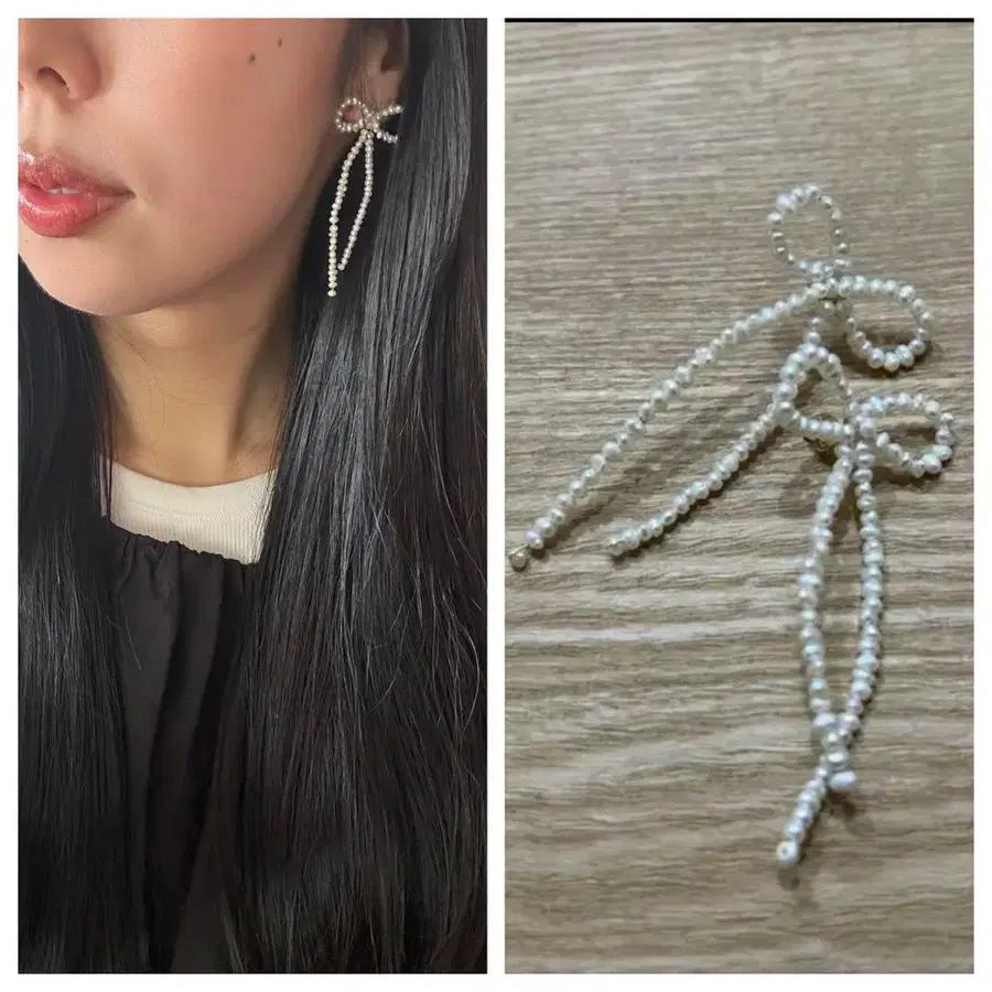 핸드메이드 담수 진주 귀걸이입니다. 제 브라이덜을 계기로 만들기 시작했습니다. 판매용으로 만들고 있습니다. 제가 착용하고 있는 것을 판매하는 것이 아니므로 안심하시기 바랍니다. 귀걸이 부분은 스테인리스 소재입니다. 철사가 들어가 있어 어느 정도 굽힘이 가능하므로, 바깥쪽으로 리본을 만들거나 리본의 모양을 바꿔서 원하는 모양으로 만들 수 있습니다. 리본 모티브이지만, 너무 달지 않아 봄, 여름에는 화이트 티셔츠나 데님과 함께 매치해도 귀여울 것 같습니다. 리본 담수 진주 le bonbon 브라이덜 액세서리 브라이덜