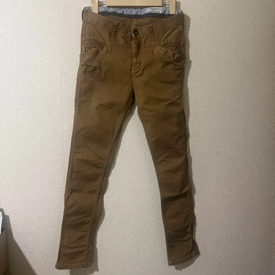 라이트 브라운 스키니 팬츠 착용 횟수는 적습니다. 착용에는 문제가 없지만, 허리 뒷부분의 가죽 태그가 한쪽이 뒤틀려 있습니다. 홈 클리닝 완료 중고 상품이므로, 이 점 양해 후 구매하시기 바랍니다. - 브랜드: ANTGAUGE - 색상: 브라운 - 특징: 튼튼한 솔기 - 스타일: 스키니 팬츠