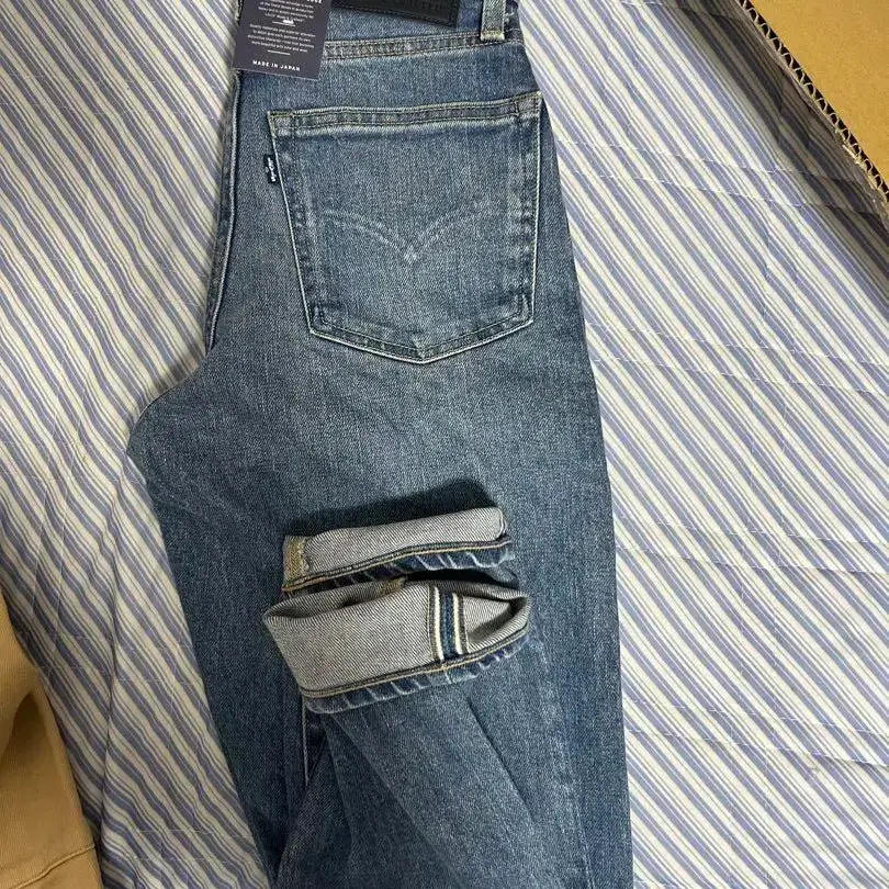 Made in Japan Japanese selviedge - 브랜드: Levi's - 모델명: BORROWED FROM THE BOYS - 소재: 코튼 98%, 엘라스틴 2% - 사이즈: 24 - 색상: 라이트 블루 희귀한 일본산 데님입니다. 선물로 받았지만 필요 없게 되어 판매합니다.