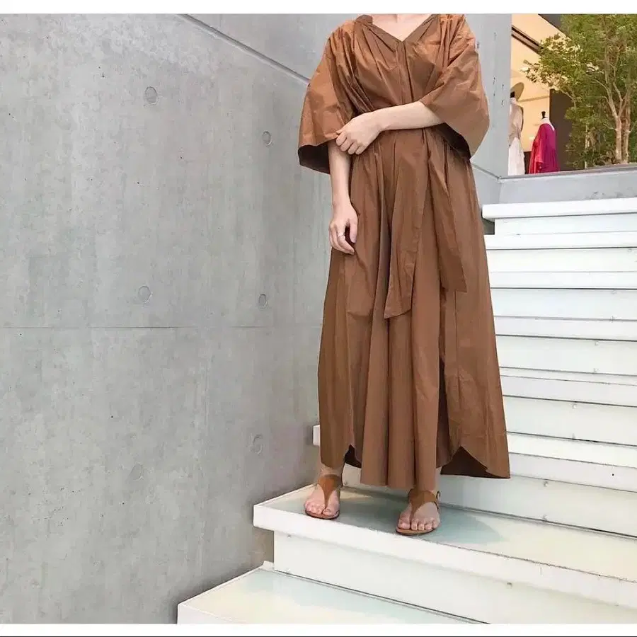 이에나 KALANCHOE 브라운 롱 원피스 반팔