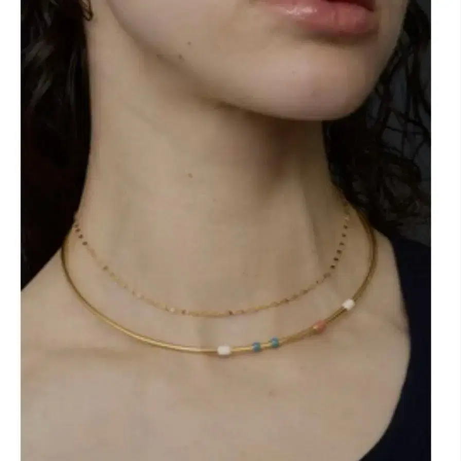 Litmus 화이트 펄 3단 초커 골드링 포함