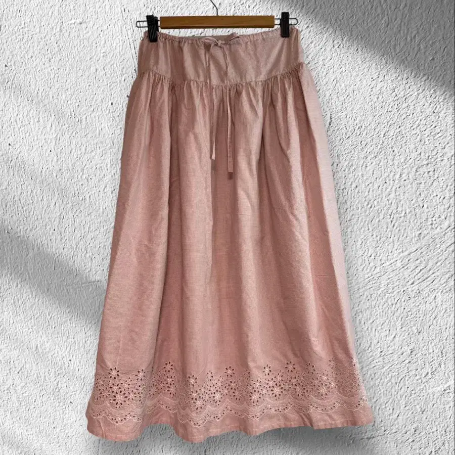 PINK HOUSE/ 핑크하우스 깅엄 체크 자수 개더 스커트